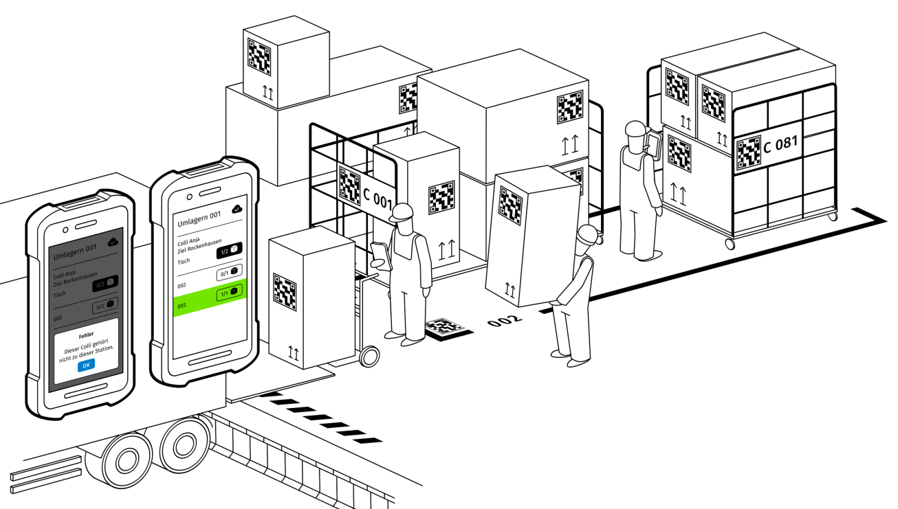 Kommissionieren wird zum Kinderspiel: smartdis zeigt in der App übersichtliche Ladelisten inklusive der genauen Standorte aller Packstücke.